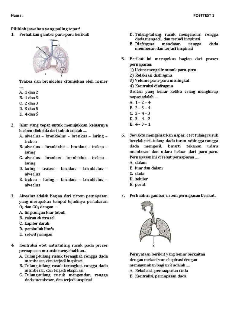 Soal biologi kelas 11 sma tentang sistem pernapasan & kunci jawaban a.